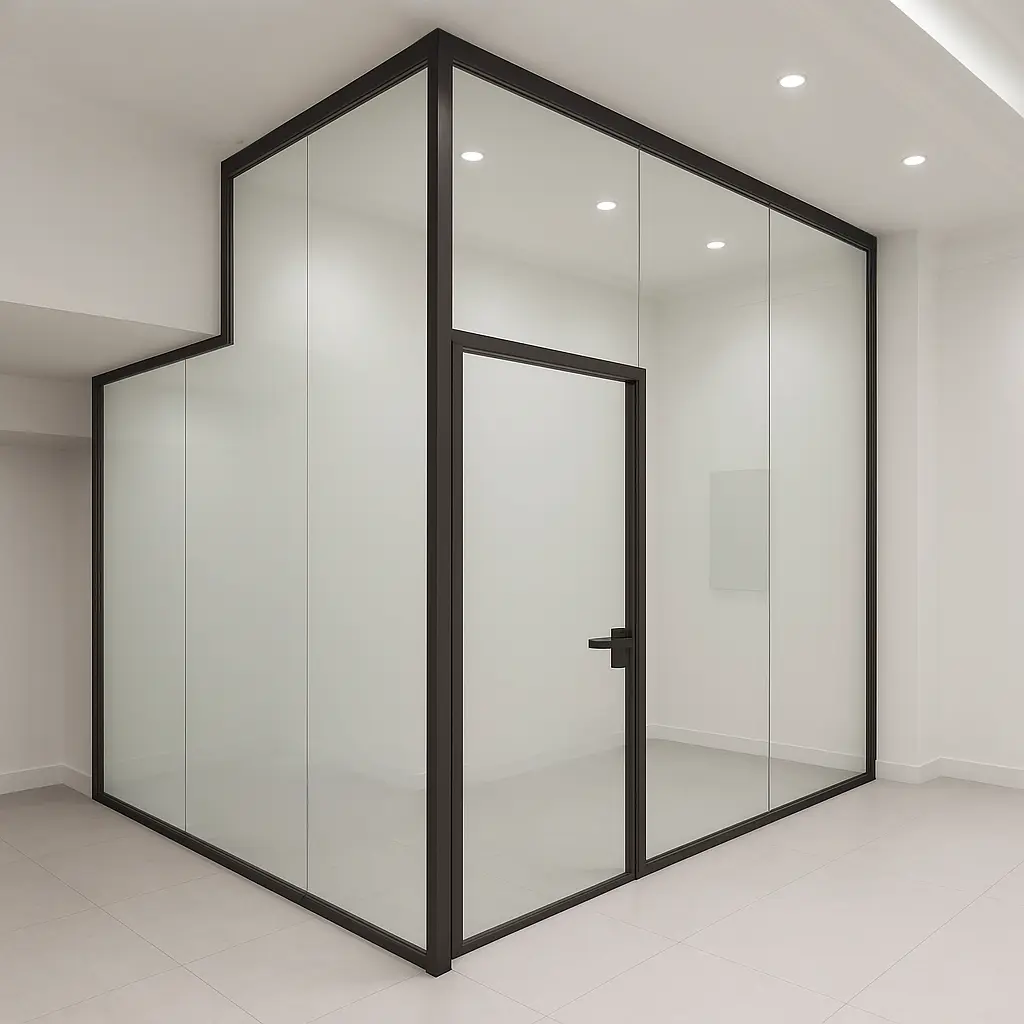 - جلوهای مدرن و حرفهای: خطوط تمیز و شفافیت بینظیر شیشه، جلوهای مینیمال، مدرن و بسیار حرفهای به دفتر کار شما میبخشد. این پارتیشنها به سرعت فضای شما را متحول کرده و آن را همگام با آخرین ترندهای طراحی داخلی دفاتر پیشرو میکنند.